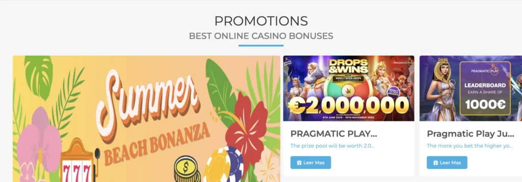Los fines de semana incluyen bonos especiales con códigos SATURDAY y SUNDAY. La promoción «Slot del Mes» ofrece giros gratis semanales. El sistema de devolución de cashback reintegra un porcentaje de las pérdidas acumuladas. Los torneos regulares distribuyen premios en efectivo y giros adicionales.