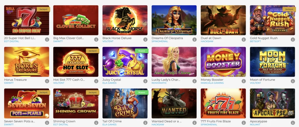 La selección de slots supera los 4,500 títulos únicos. Proveedores como NetEnt, Pragmatic Play y Microgaming dominan el catálogo. Las tragaperras Megaways representan una categoría especialmente popular. Los jackpots progresivos alcanzan cifras millonarias regularmente.